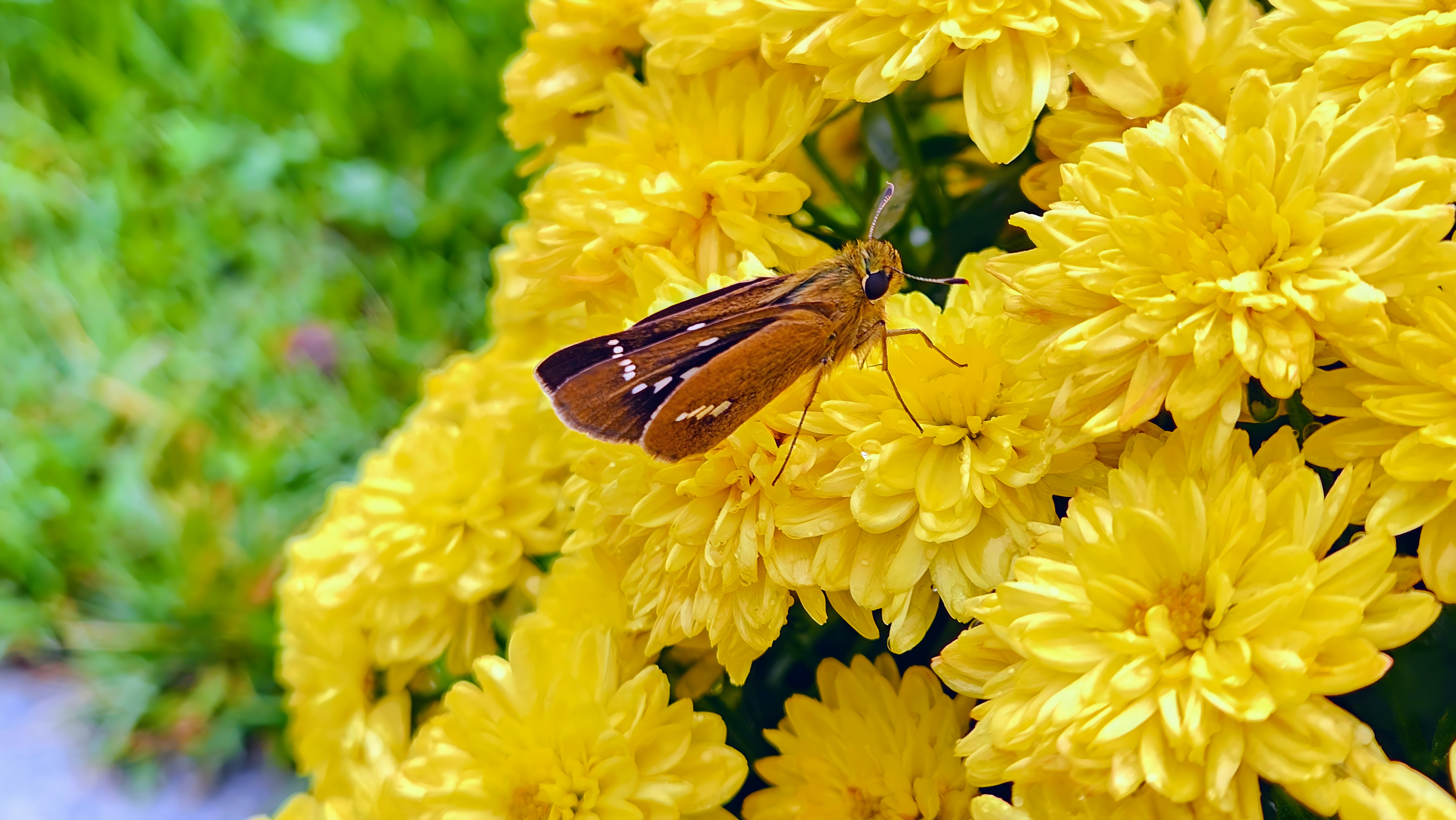 국화꽃에 앉은 줄점팔랑나비 #꽃 #국화 #나비 #줄점팔랑나비 [원본: 해상도 = 8000x4504, 크기 = 5MiB]