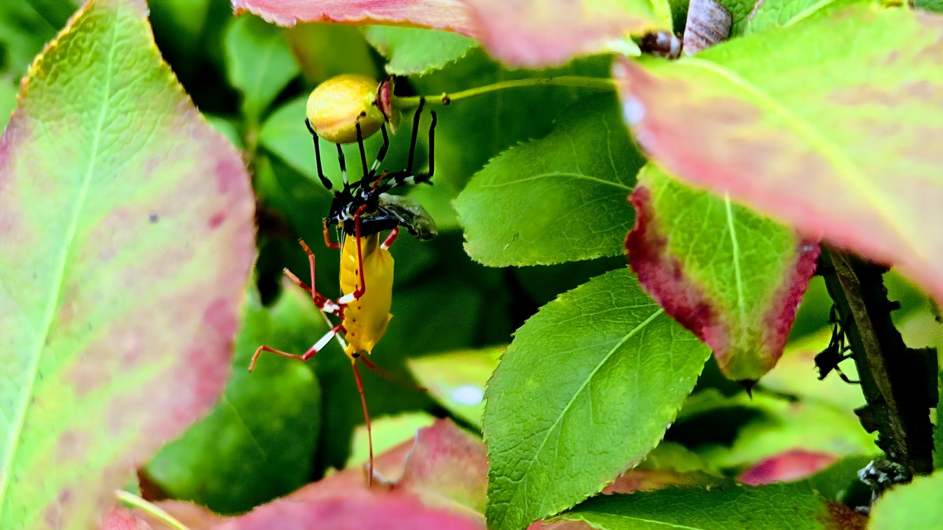 화살나무 열매에서 탈피하는 노랑배허리노린재