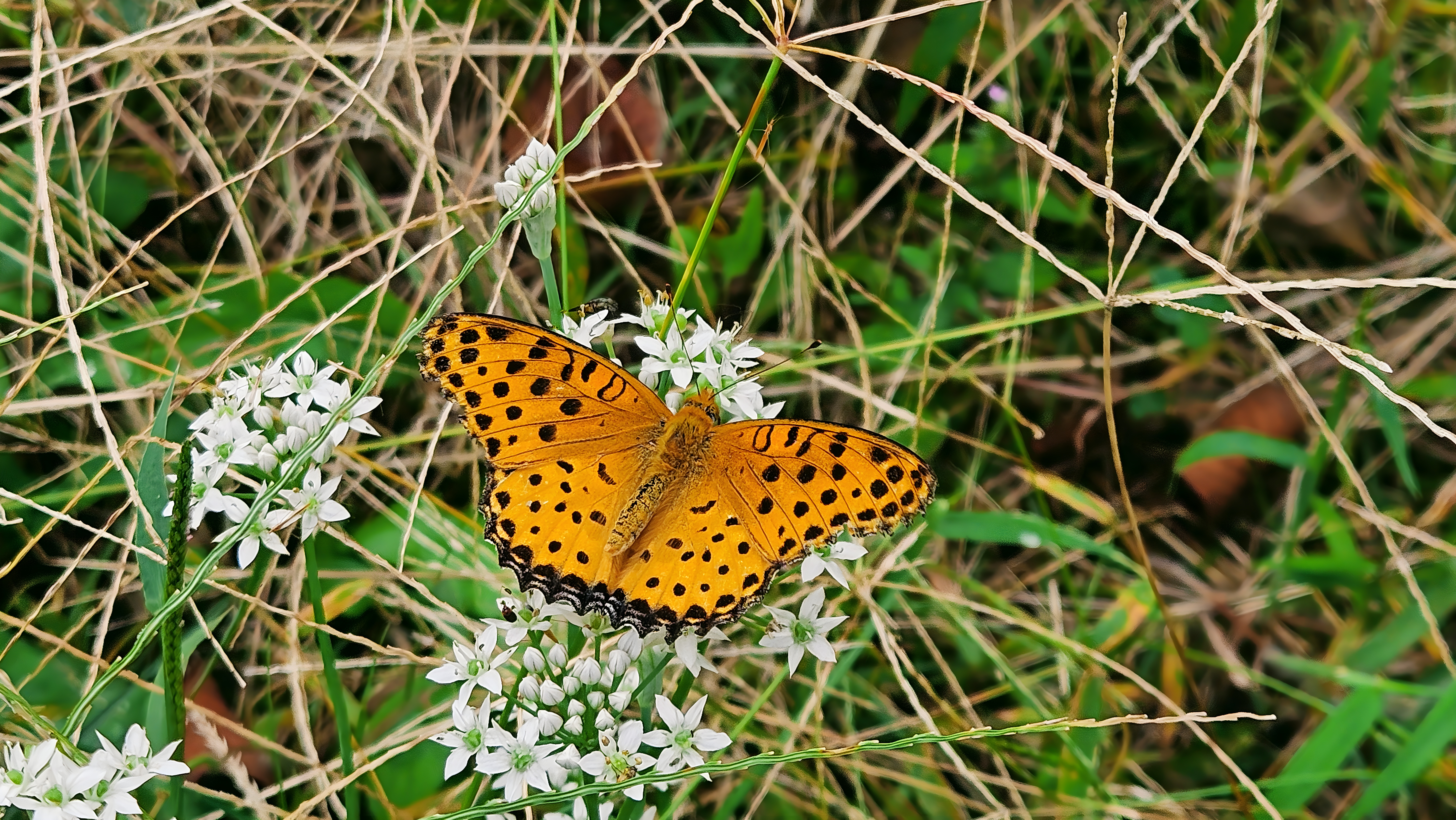 부추꽃에 앉은 암끝검은표범나비 수컷