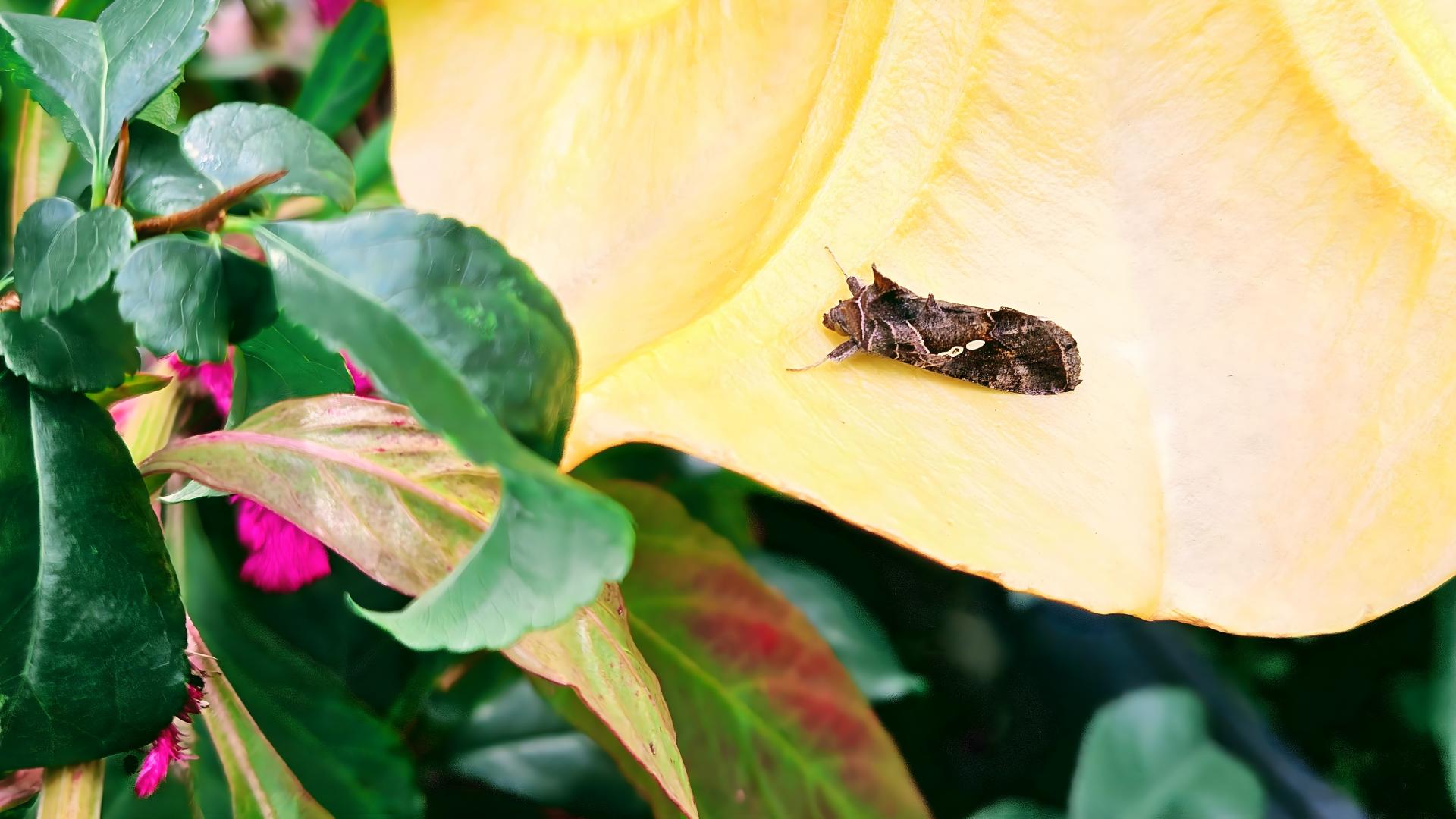 천사의 나팔 꽃의 붉은금무늬밤나방 (추정)