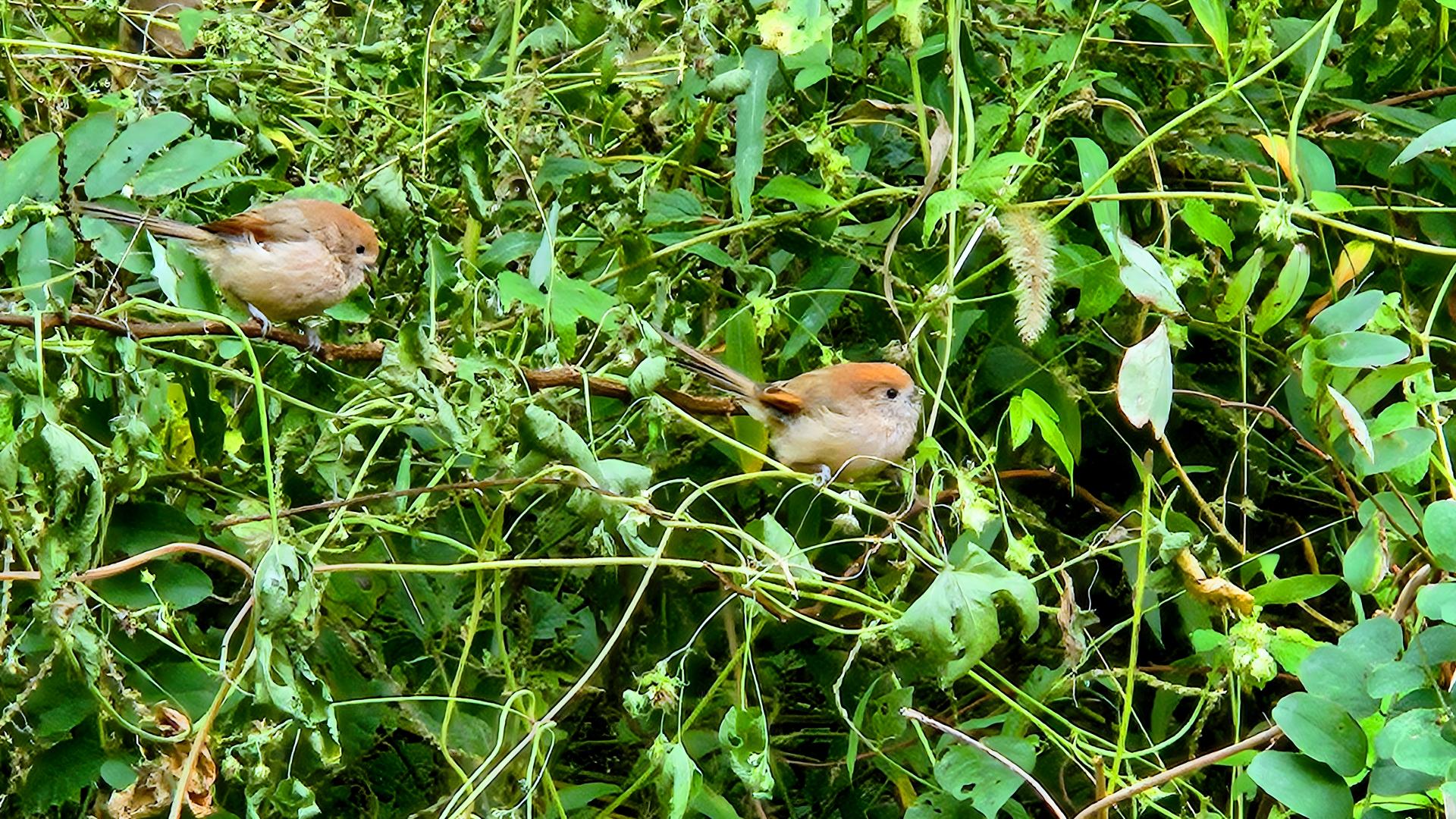 풀섭의 뱁새 두 마리 #풀섶 #새 #뱁새 #붉은머리오목눈이 [원본: 해상도 = 8000x4504, 크기 = 9MiB]