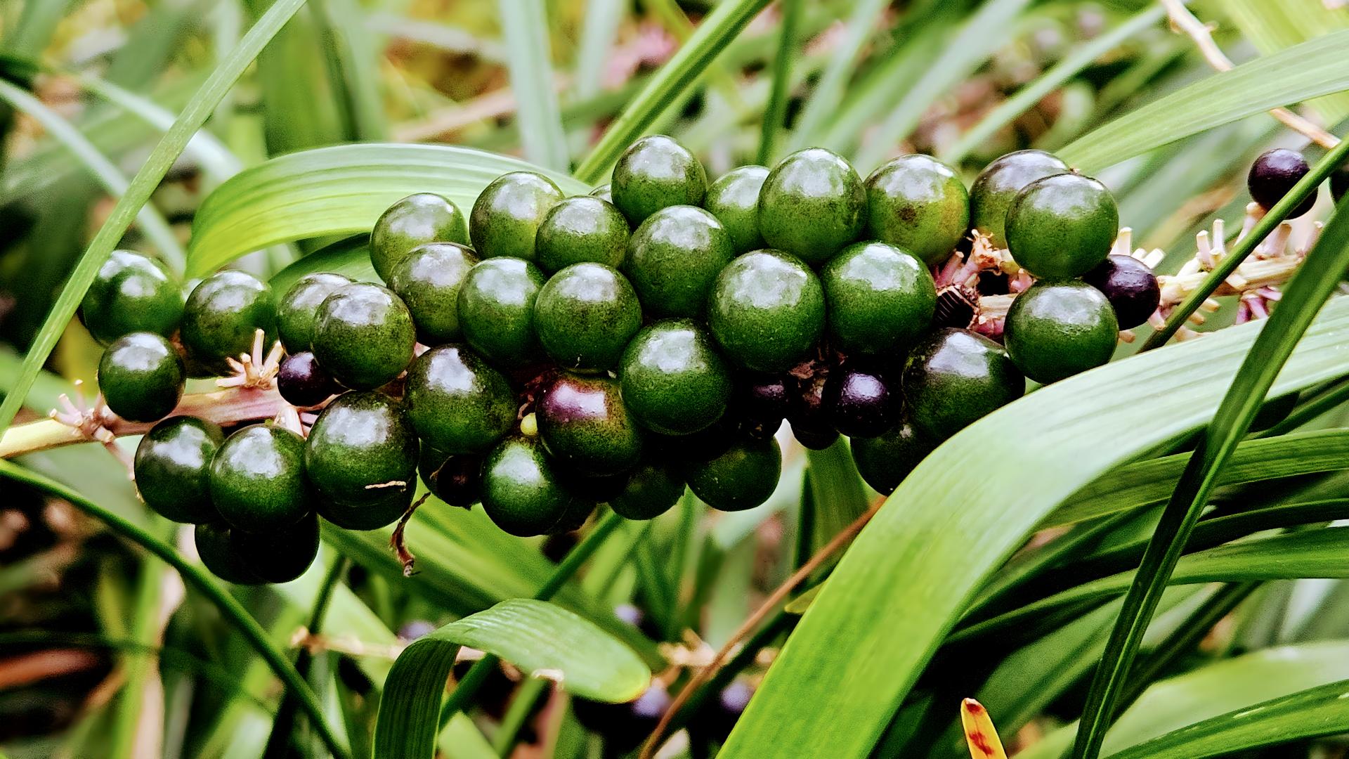 조금씩 익어가는 맥문동 열매송이 (숨은그림찾기: 산바퀴 약충)