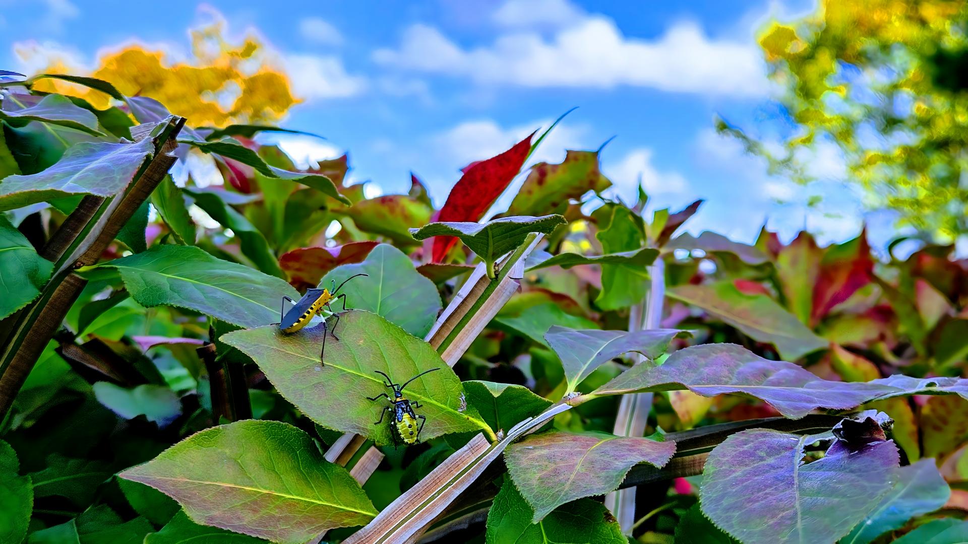 화살나무의 노랑배허리노린재 성충과 약충