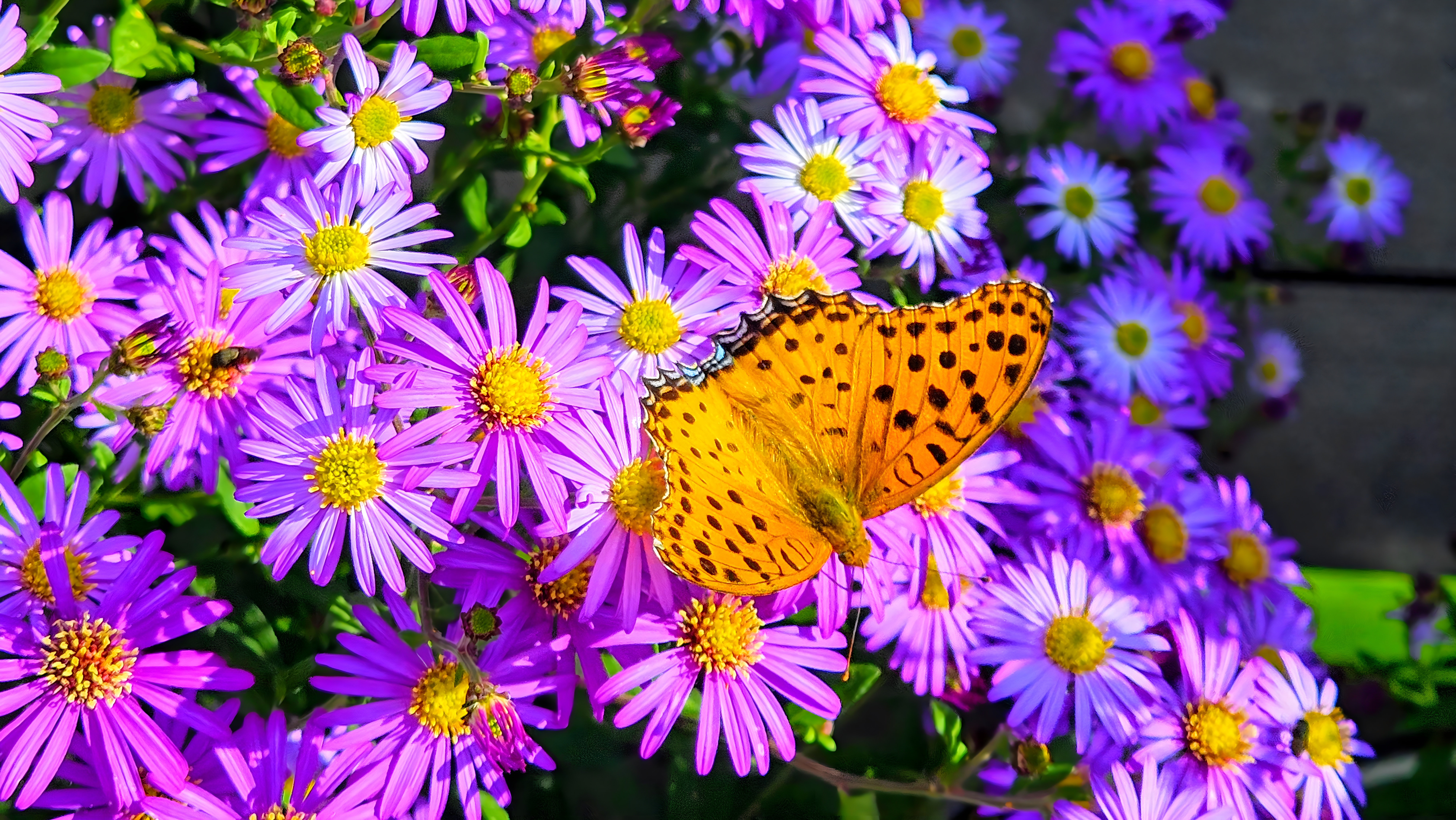 개미취꽃을 찾은 암끝검은표범나비 수컷 #꽃 #들국화 #개미취 #나비 #암끝검은표범나비 [원본: 해상도 = 8000x4504, 크기 = 10MiB]