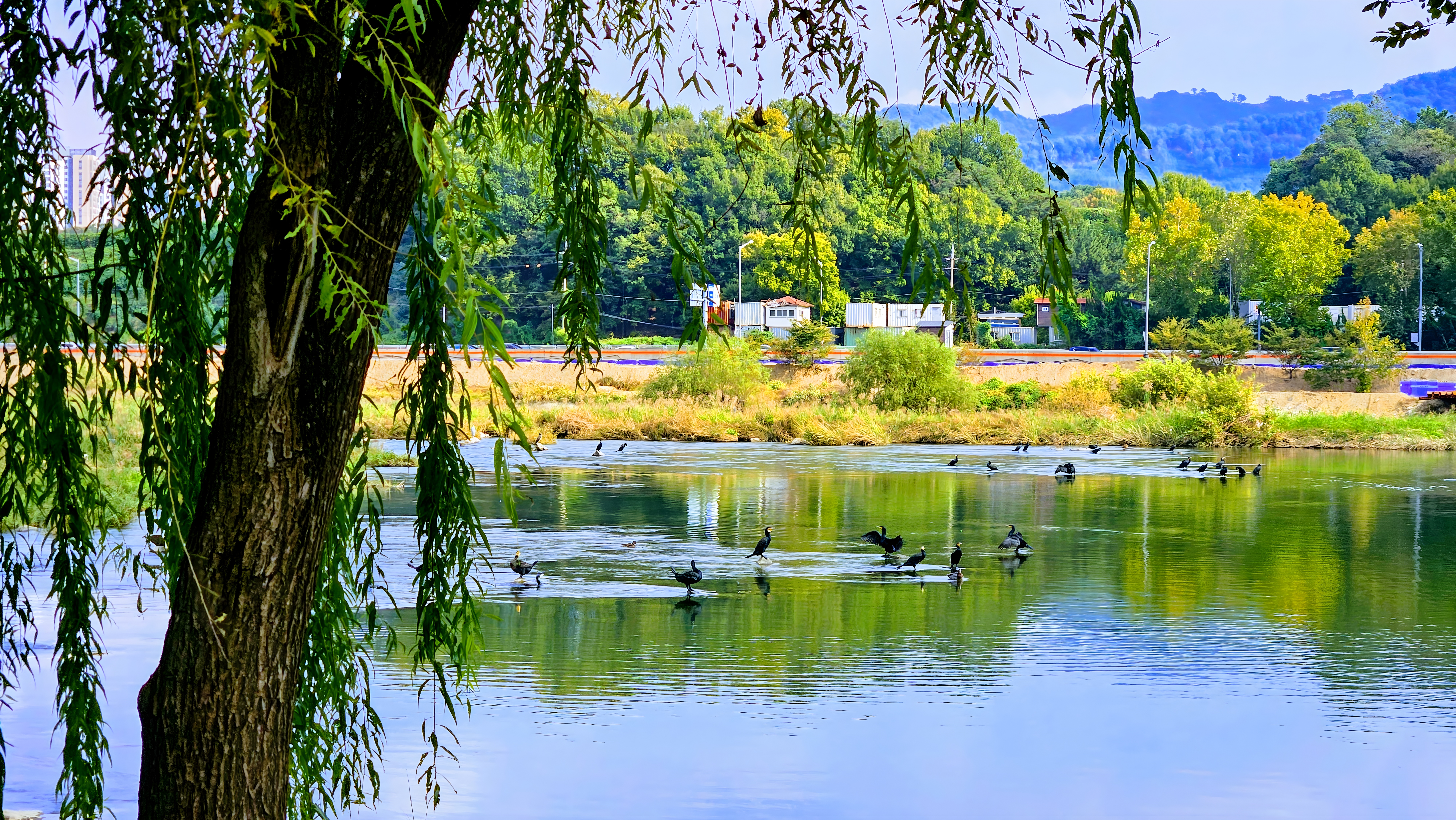 갑천 민물가마우지떼 #하천 #냇물 #나무 #수양버들 #새 #민물가마우지 [원본: 해상도 = 8000x4504, 크기 = 12.7MiB]