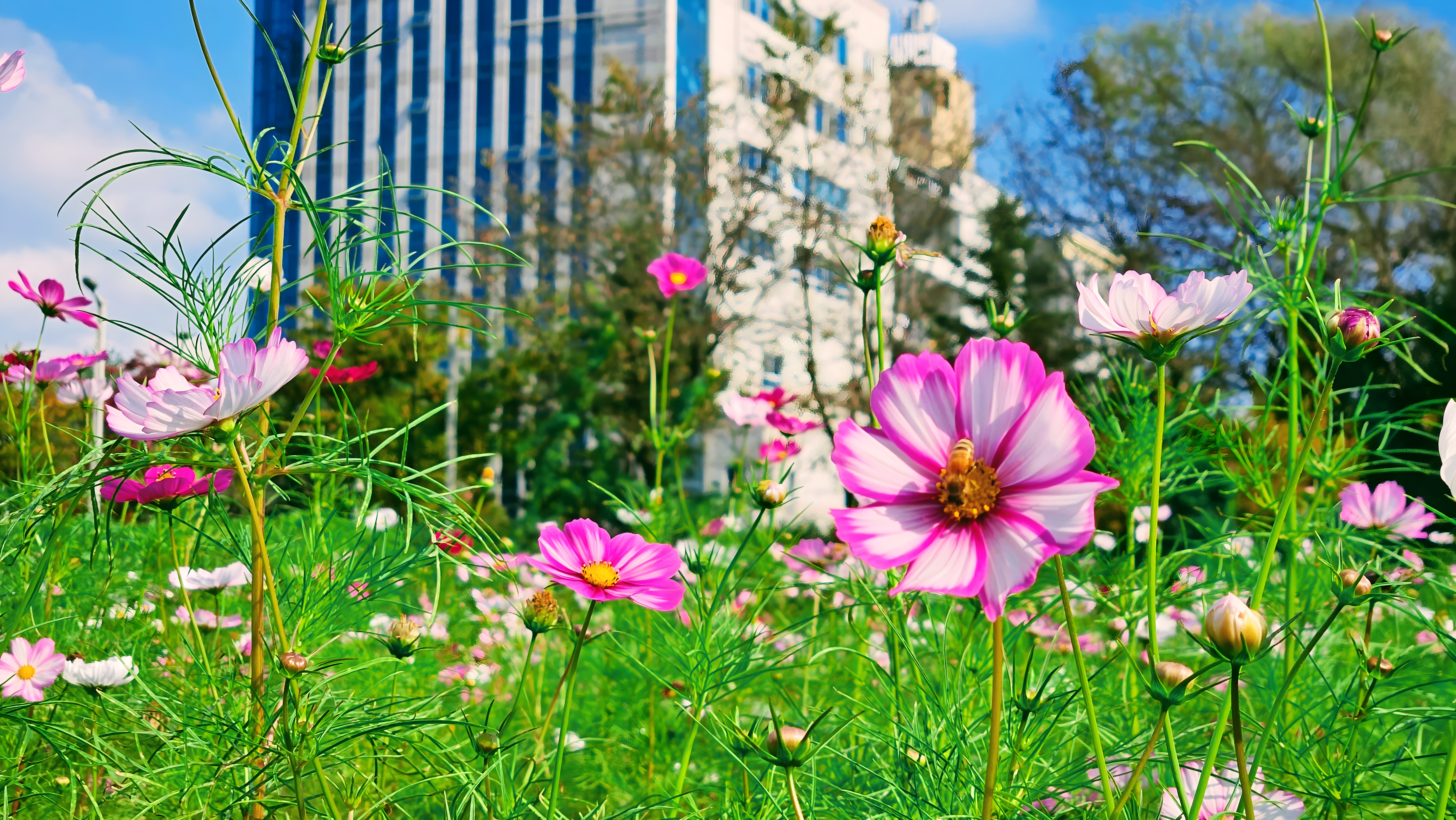 코스모스 꽃밭 #풍경 #꽃밭 #코스모스 #꽃 #살사리꽃 #꿀벌 [원본: 해상도 = 8000x4504, 크기 = 9.3MiB]