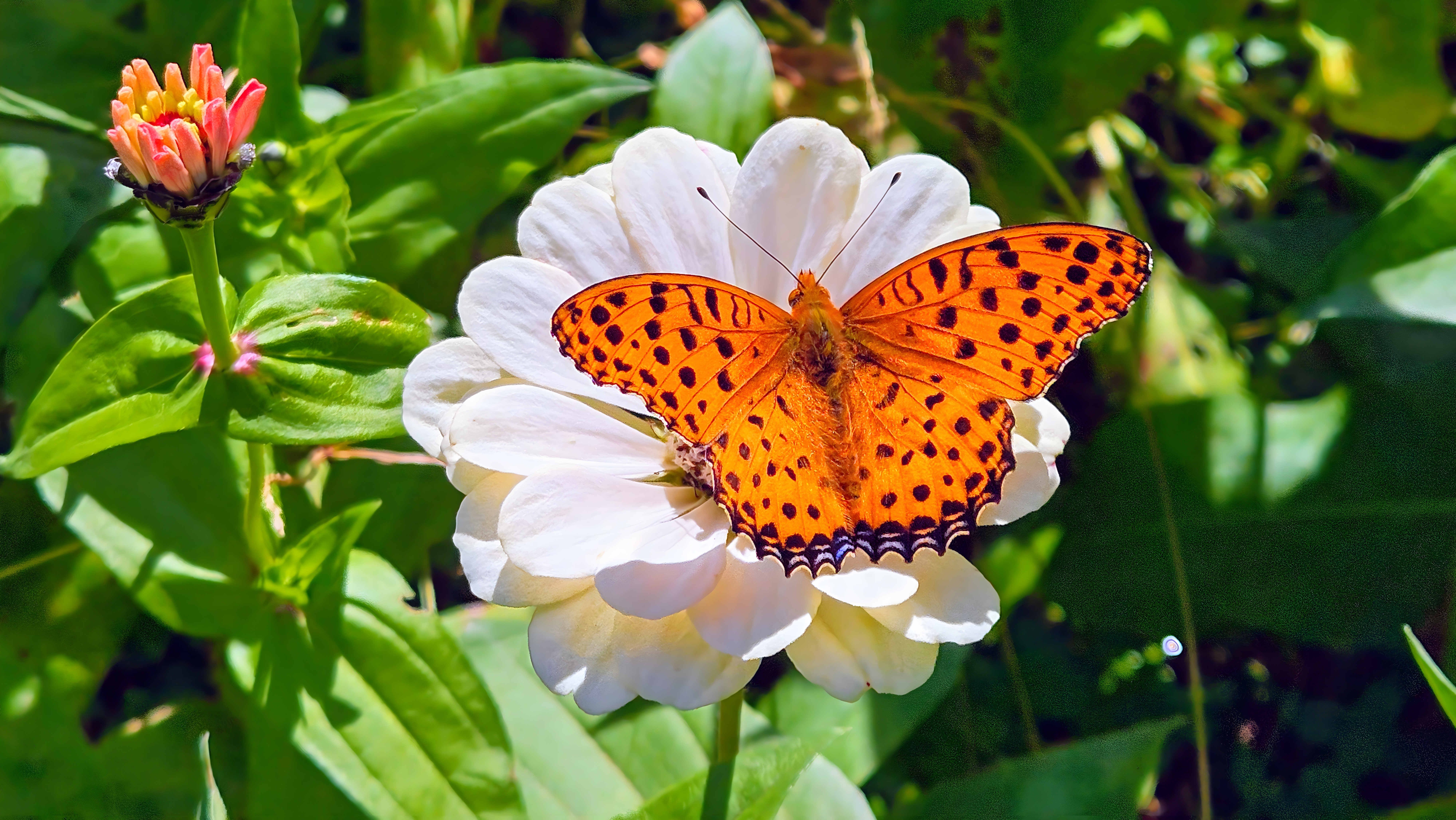 백일홍 꽃의 암끝검은표범나비 #꽃 #백일홍 #나비 #암끝검은표범나비 [원본: 해상도 = 8000x4504, 크기 = 9.5MiB]