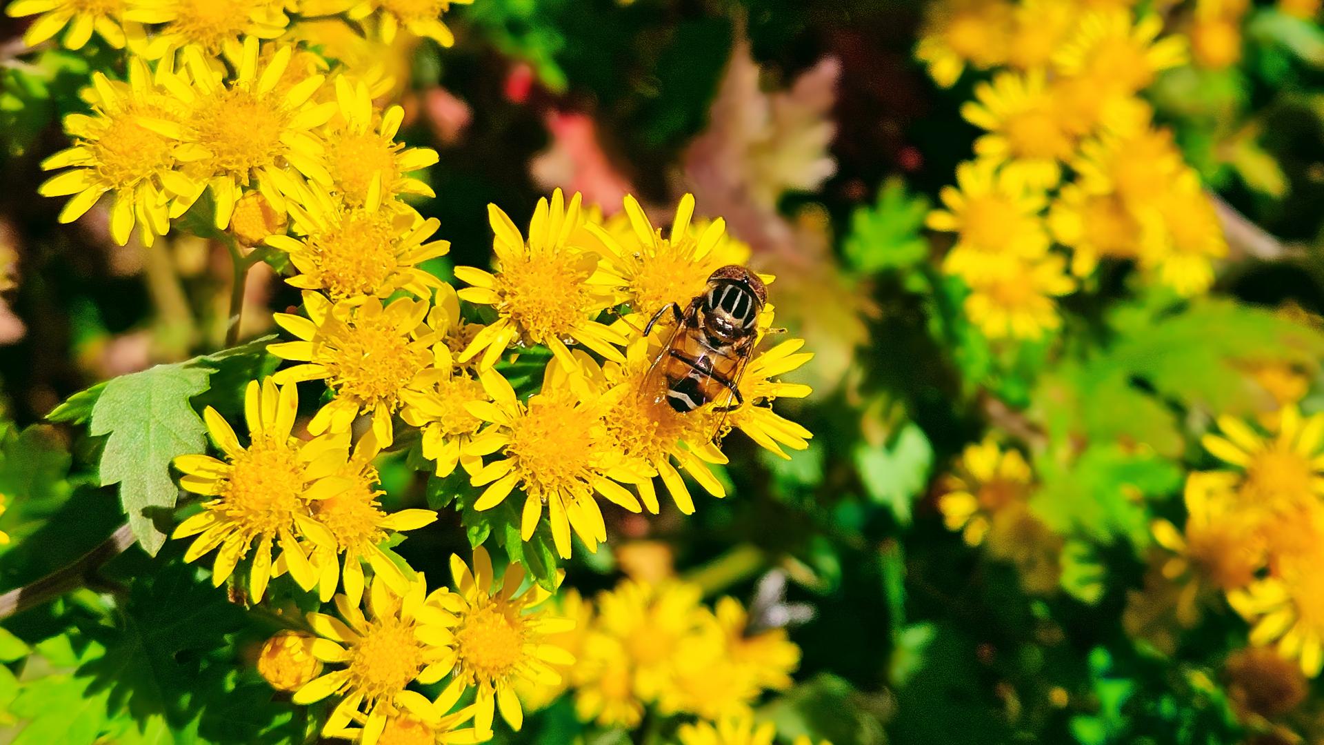 들국화꽃을 노니는 오줄루리꽃등에 #들국화 #산국 #꽃 #꽃등에과 #오줄루리꽃등에 [원본: 해상도 = 8000x4504, 크기 = 10.2MiB]