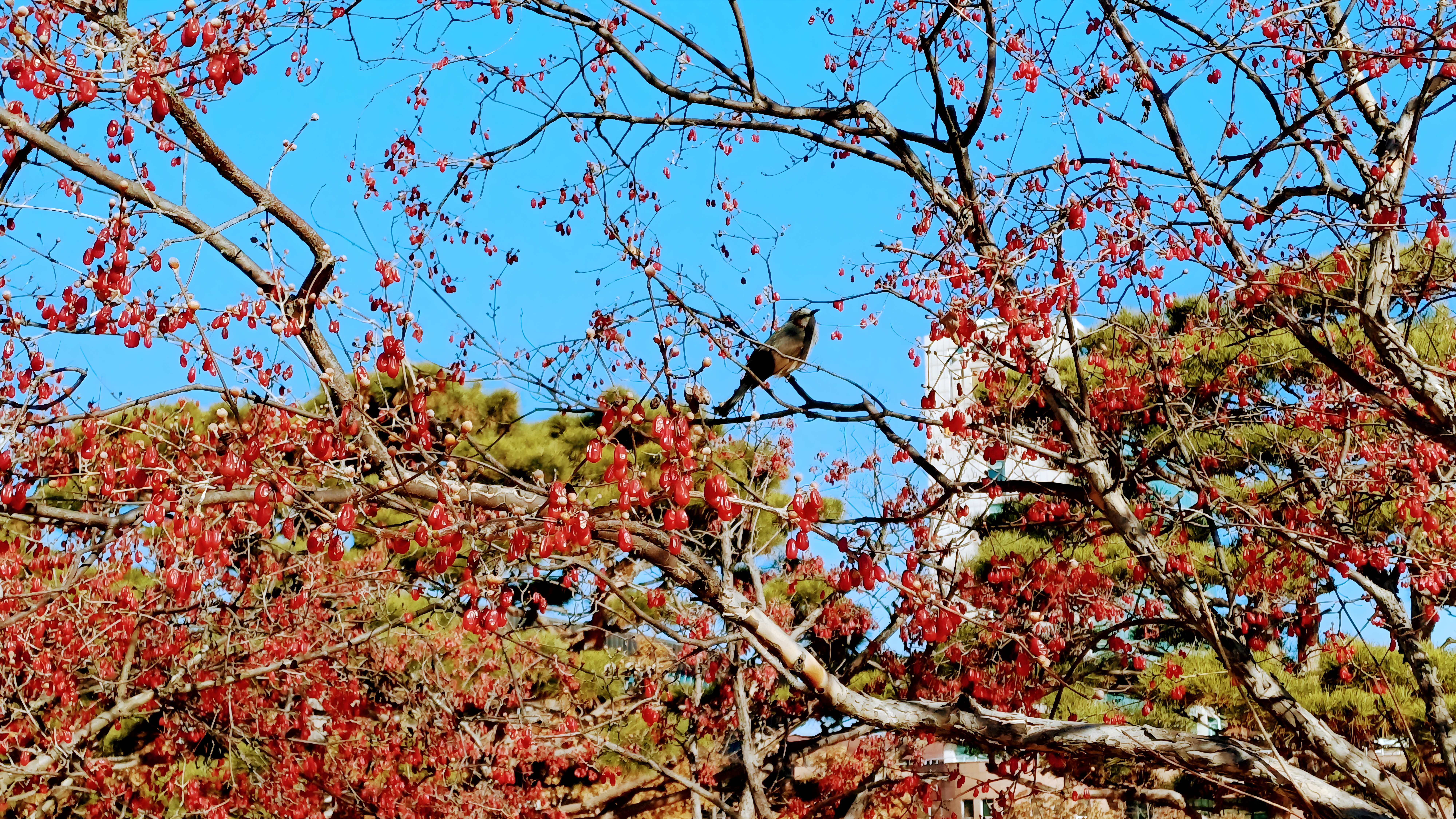 산수유 열매를 먹으러 온 직박구리 #나무 #열매 #산수유 #새 #직박구리 [원본: 해상도 = 8000x4500, 크기 = 13.5MiB]